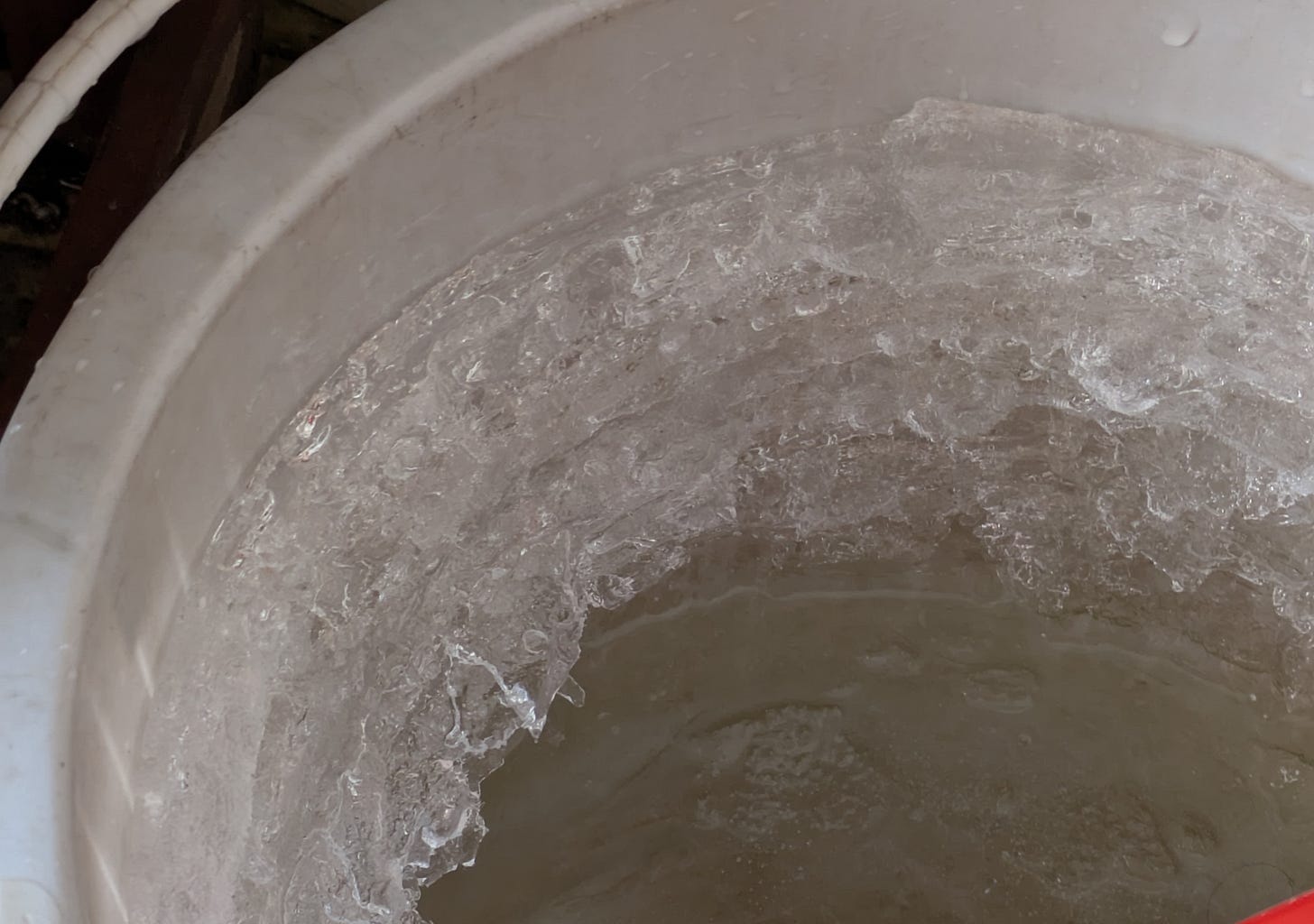 The frozen water bottle has to be shaken, then put beside your sleeping bag, then shaken again to create a slush that satisfies your thirst.