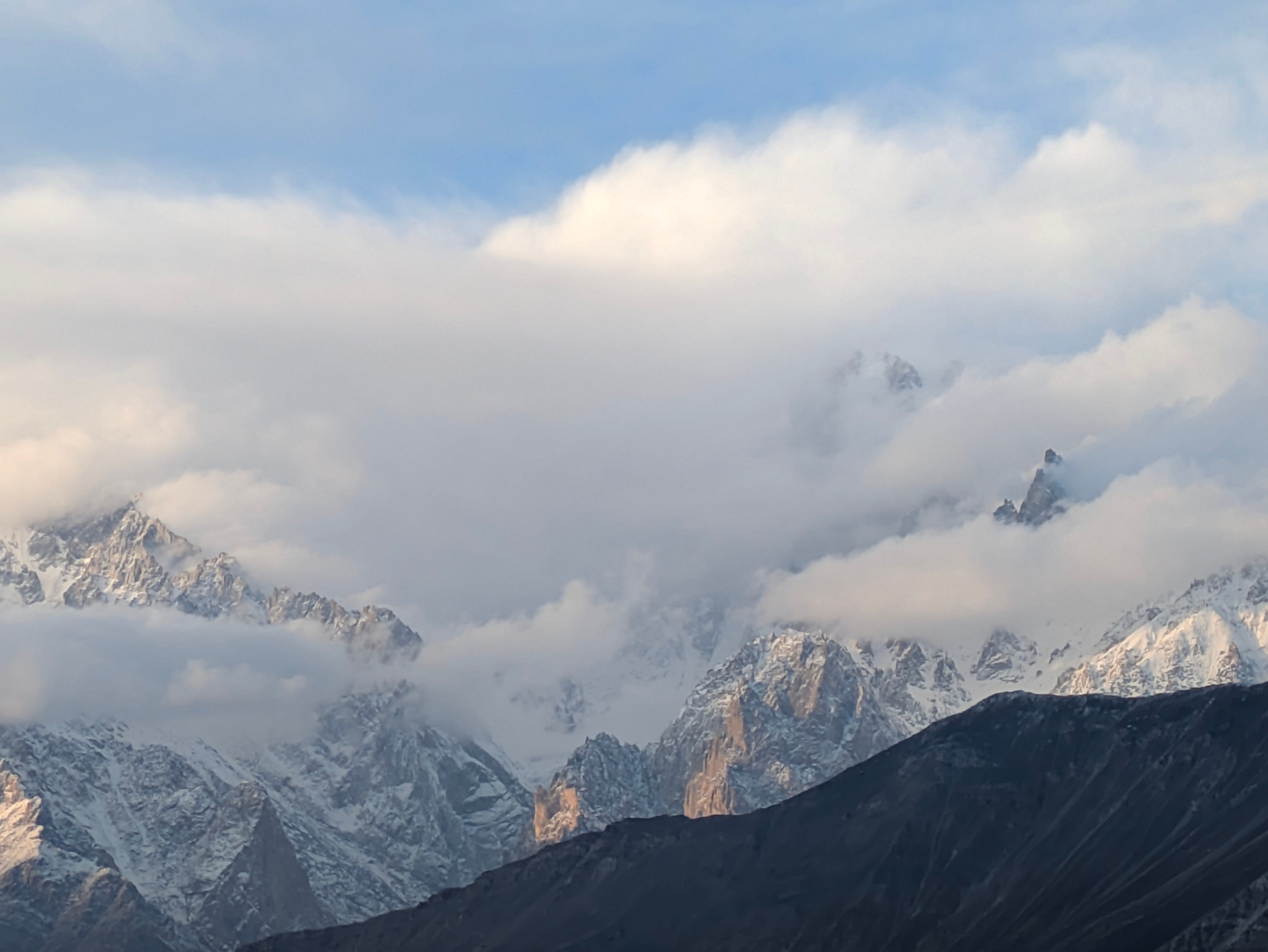 I looked at the menacing Diran, the howling Hopar, and the incoming storm headed from the pointed Lady Finger peak, and concluded that I wanted to keep doing more of it. There’s nothing that tells you anything is possible than miniscule men standing at the base of a giant and saying ‘this is worth our time, and should be done’