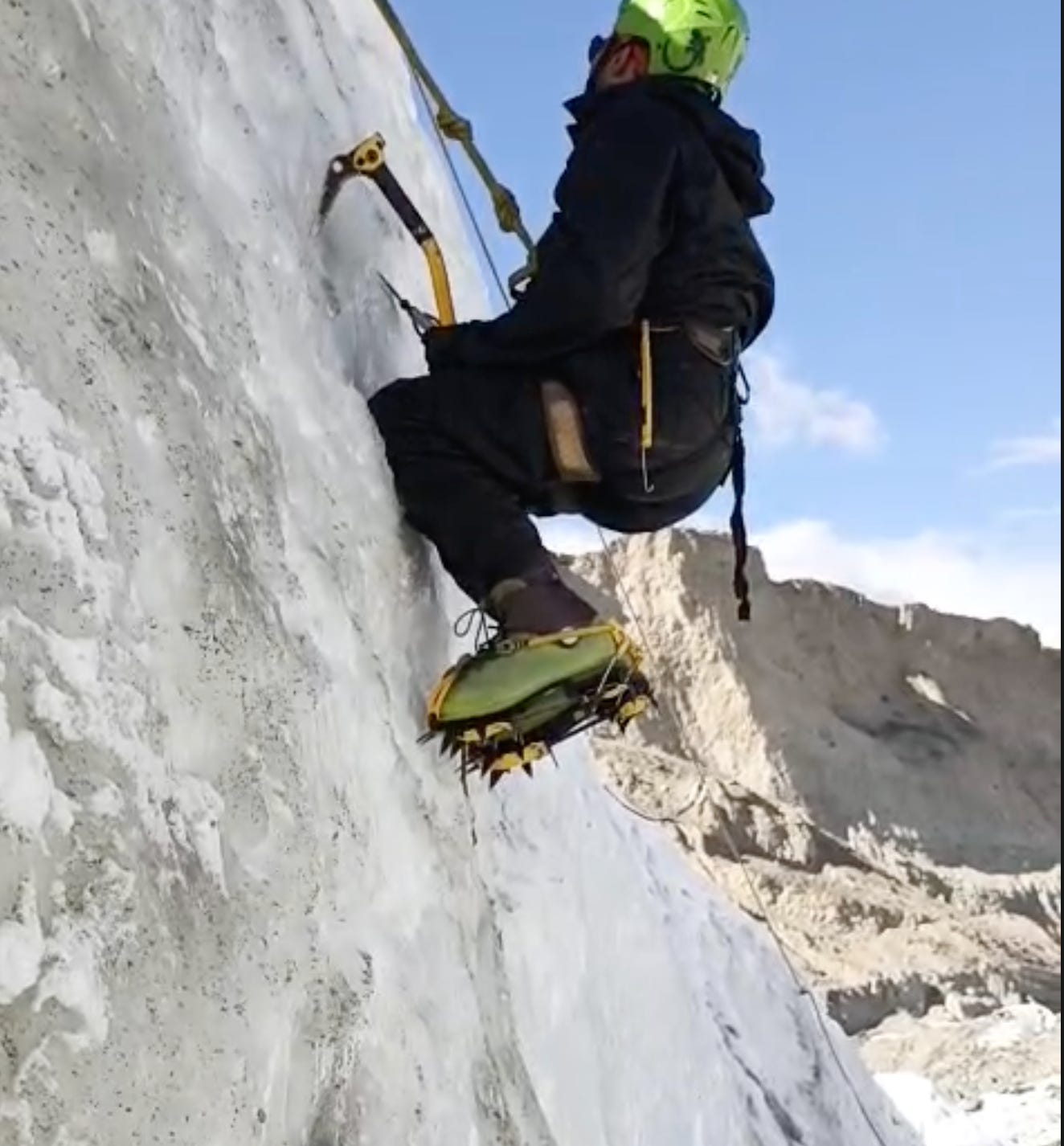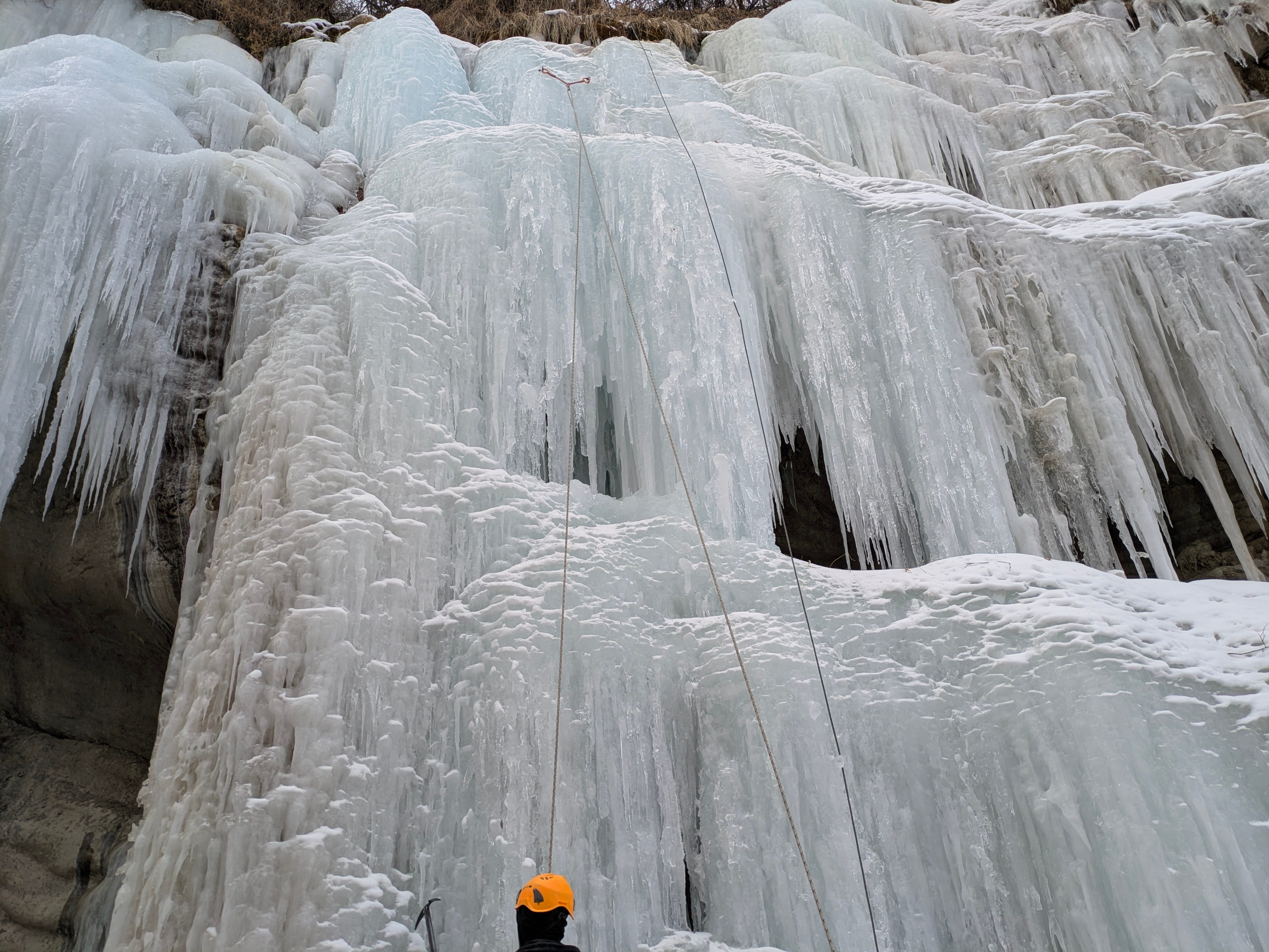Tomorrow, I have to ‘mock’ lead the whole route. Which means I’m responsible for ropes/ice screws and fixing everything as I go up. It seems scary so far.