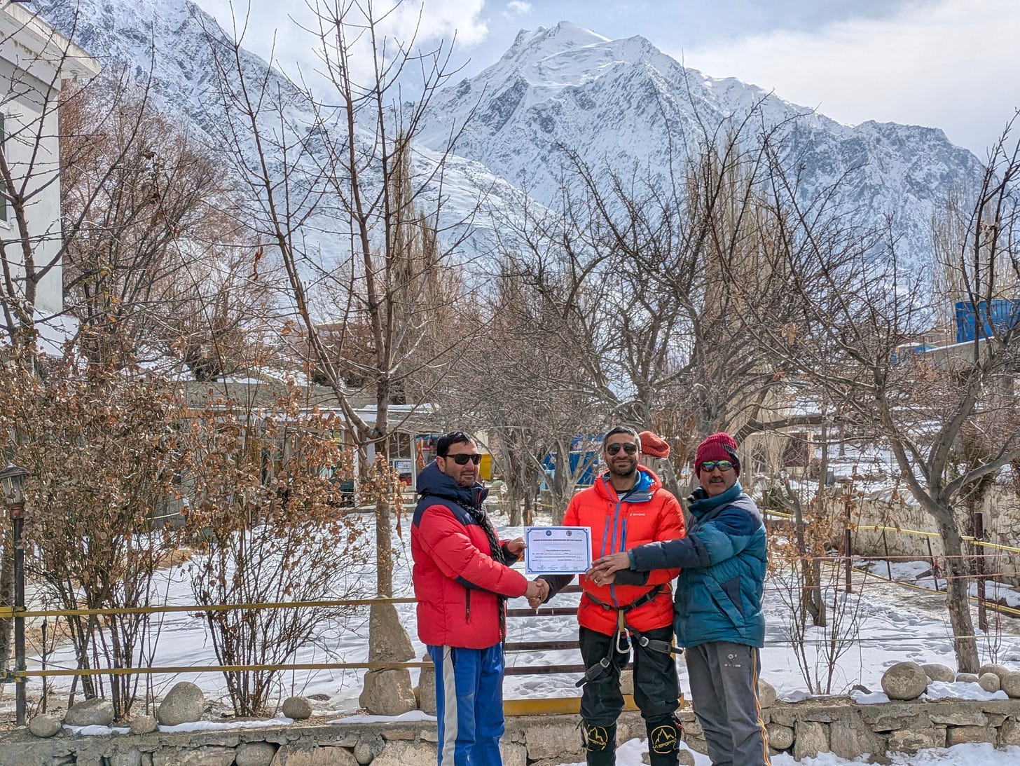 That helped somewhat. But then we discovered that the rock climbing shoes Ali Jaan had brought for me were small. I had to wear my trekking shoes, and as we trudged through the snow, my feet got soaked.